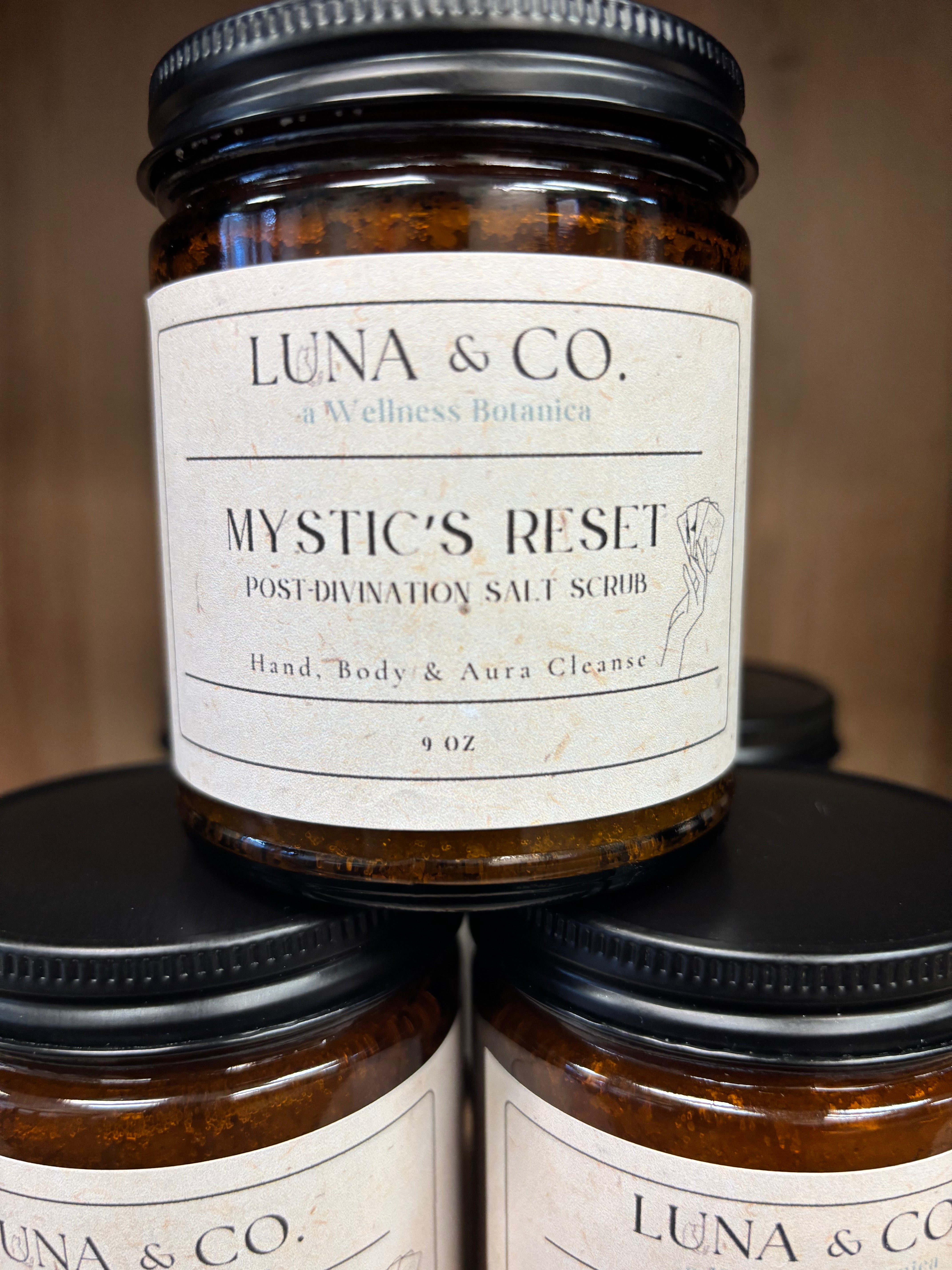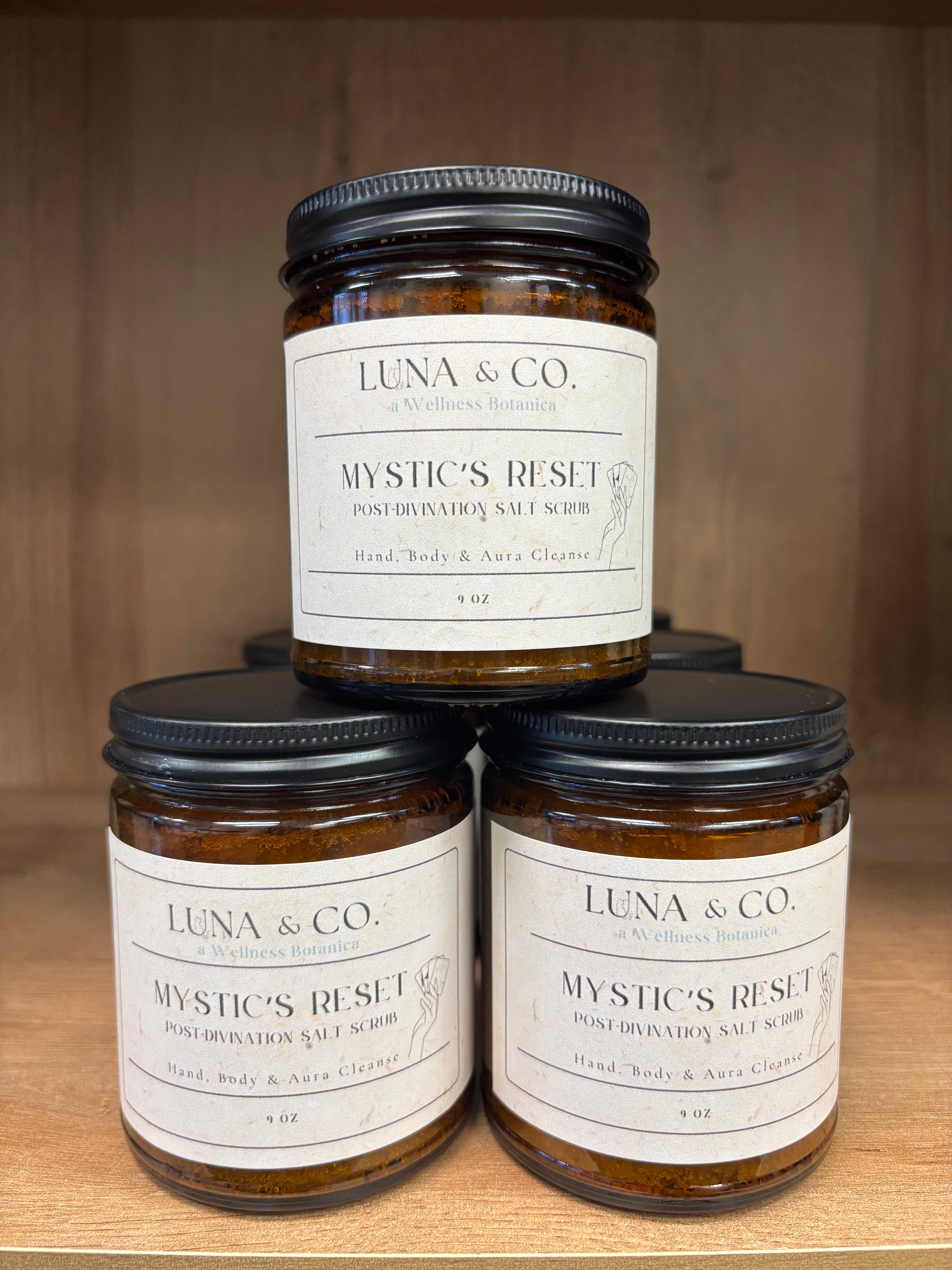 Mystic's Reset salt scrub combines natural salt, essential oils, and herbal extracts to create a refreshing experience. This product is designed to gently exfoliate your skin, removing dead cells and impurities, so your skin feels renewed. Because it is made from all-natural ingredients, the salt scrub is safe for all skin types, making skincare rituals easy and enjoyable.
