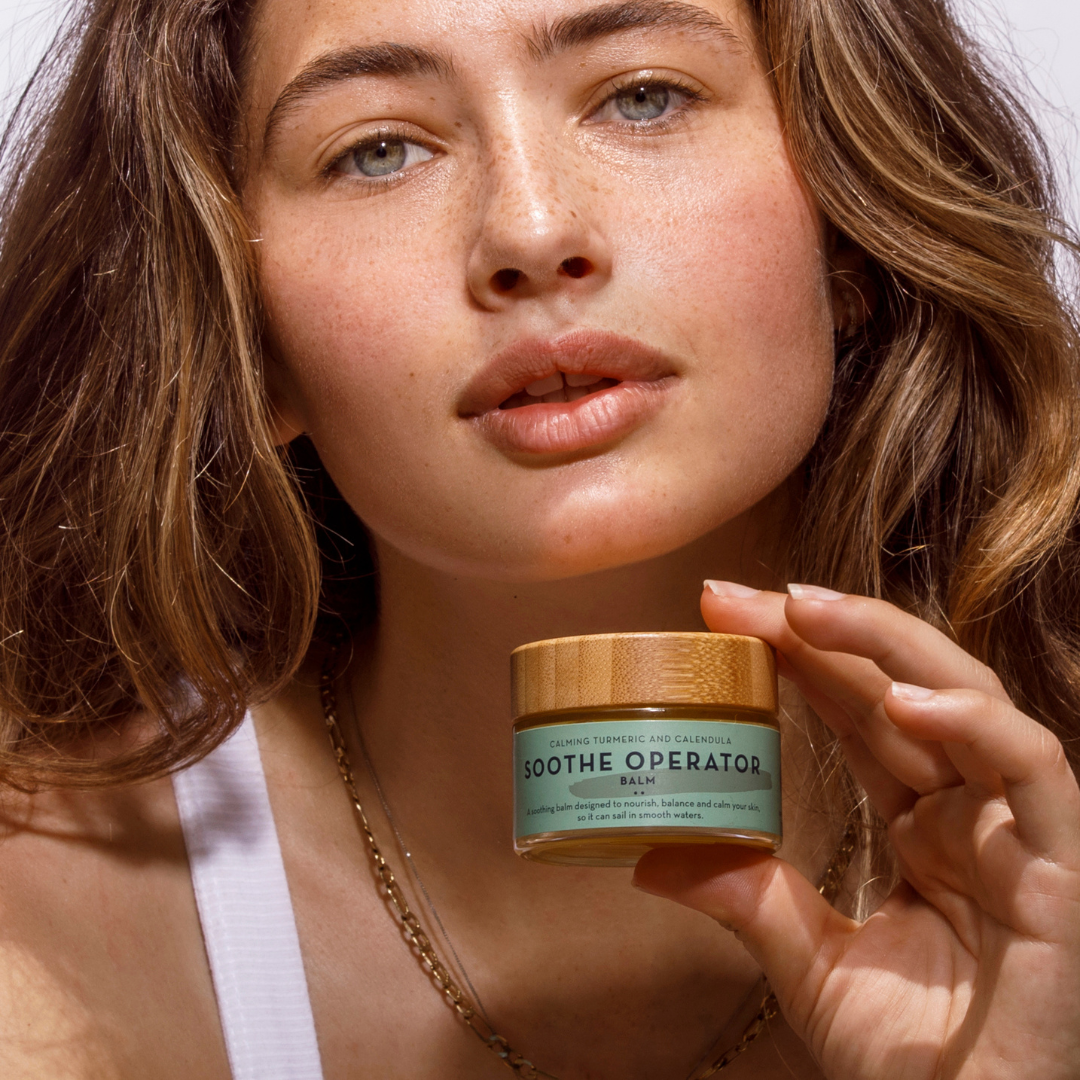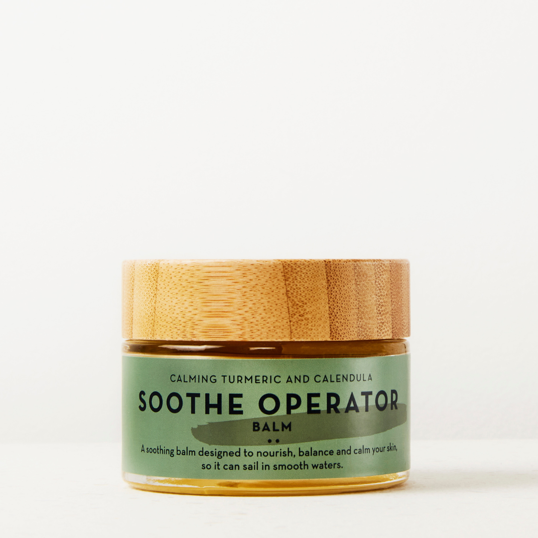 Soothe Operator is a calming balm infused with antioxidants and vitamin C, featuring turmeric and calendula to restore balance to your skin. Suitable for all skin types, including sensitive or stressed skin, it's your go-to solution against breakouts, irritations, and daily environmental aggressors.